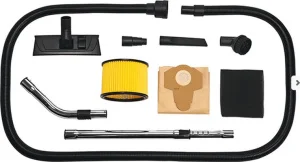 Источником питания служит однофазная электросеть. Сетевой кабель длиной 5 м и всасывающий гибкий шланг длиной 3 м позволяют даже без применения удлинителей убрать значительную площадь. Кроме этого, из важных преимуществ пылесоса стоит отметить следующие: