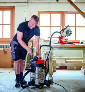 Пылесос строительный Einhell Expert TE-VC 2230 SA 30л (2342363) оборудован двумя большими колесами и двумя маленькими роликами для комфортного передвижения. Вес агрегата составляет 9,6 кг.