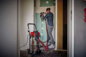 Мощная модель от немецкого бренда для уборки в сухих и влажных условиях. Большой 40-литровый бак пылесоса строительного Einhell Expert TE-VC 2340 SAC 40л (2342450) позволяет использовать его на строительных площадках, в мастерских. Максимальная мощность всасывания достигает 230 мбар. Корпус изготовлен из прочного ударостойкого пластика, а бак для отходов из нержавеющей стали. Всасывающий шланг гибкий и прочный, диаметром 36 мм.