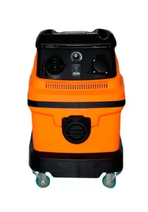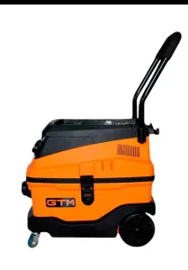 Пылесос подключается к бытовой электросети напряжением 220/230В и частотой 50 Гц с помощью кабеля длиной 4м. Коллекторный двигатель развивает максимальную мощность 1600 Вт, при этом возможна плавная регулировка мощности, что позволяет экономить электроэнергию. Трехступенчатая система фильтрации с использованием высокоэффективного фильтра HEPA (High Efficiency Particulate Air) обеспечивает надежную защиту двигателя от пыли и мелких частиц и оборудована полуавтоматической системой очистки. Так же для защиты двигателя от попадания воды установлен поплавковый выключатель, который срабатывает при наполнении бака водой. Максимальный объем воды, который можно собрать, составляет 10 литров. Контейнер для мусора имеет объем 30литров. Данная модель промышленного пылесоса может использоваться для принудительного пылеудаления при работе с различным электроинструментом. Для реализации функции синхронного старта в конструкции предусмотрена возможность подключения электроинструментов мощностью не более 2000 Вт. При этом пылесос включается автоматически через 5 секунд после включения инструмента. 4 транспортировочных колеса и складывающаяся ручка позволяют комфортно перемещать пылесос по площадке. Так же к несомненным достоинствам пылесоса строительного GTM JN 501можно отнести два разъема для подключения шланга и телескопическую трубку из нержавеющей стали.