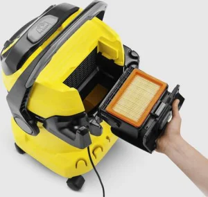 Пылесос строительный KARCHER WD 5 (53721) может функционировать как в сухих так и во влажных условиях. Вместительный бак для мусора объемом 25 л. Длина кабеля питания равна 5 м, что значительно повышает мобильность прибора. Основные преимущества: