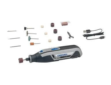 В комплект Dremel Lite 7760-15 входят 15 универсальных насадок, USB-кабель, инструкция и гарантийный талон - всё необходимое для начала работы. Благодаря продуманному дизайну и мягким накладкам в зоне хвата инструмент отлично лежит в руке и позволяет выполнять работы максимально точно. Низкий уровень вибрации (2,5 м/с²) и умеренный шум (70 дБ) делают эксплуатацию комфортной даже в домашних условиях. Четыре уровня скорости обеспечивают гибкий контроль при обработке материалов разной плотности и структуры.