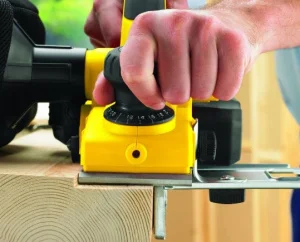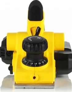 обладает мощностью 750 Вт, что позволяет гладко снимать древесину. Характеризуется упрощенным снятием фасок за счет трех V-образных пазов. Присутствует возможность регулировки глубины строгания с точным шагом, что повышает точность выполняемых работ. Подошва длиной 290 мм и глубина строгания до 2 мм, позволяет за раз обработать большую часть участка.