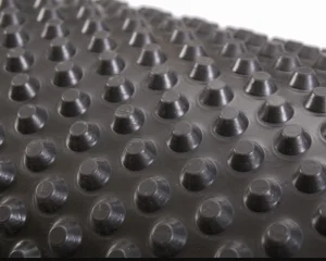 Стыки проклеивают бутилкаучуковой лентой, например Fixit К2Ш. Поверх дренажной геомембраны укладывается геотекстиль Typar SF. Это позволяет защитить дренажные каналы от засорения мелкими частицами грунта.