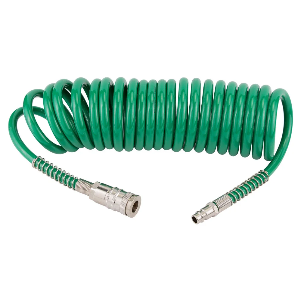 Шланг не подвержен гидролизу и имеет хорошую устойчивость к воздействию озона, масел, топлива и микроорганизмов. Эластичный. Устойчивый к ударным нагрузкам. Устойчивый к атмосферным воздействиям, абразивному износу, ультрафиолетовым лучам, многим агрессивным химическим средам. При изгибе не меняют проходного (внутреннего) сечения. Оснащен быстроразъемными соединениями для быстрого подключения к компрессору и пневматическому инструменту.