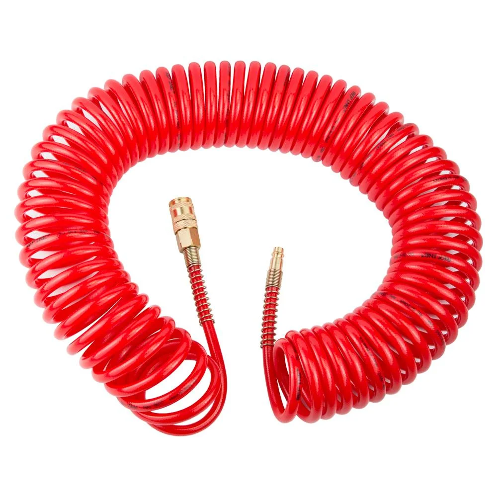 Шланг не подвержен гидролизу и имеет хорошую устойчивость к воздействию озона, масел, топлива и микроорганизмов. Эластичный. Устойчивый к ударным нагрузкам. Устойчивый к атмосферным воздействиям, абразивному износу, ультрафиолетовым лучам, многим агрессивным химическим средам. При изгибе не меняют проходного (внутреннего) сечения. Оснащен быстроразъемными соединениями для быстрого подключения к компрессору и пневматическому инструменту.