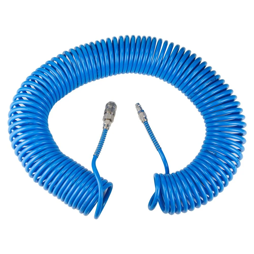 Шланг не подвержен гидролизу и имеет хорошую устойчивость к воздействию озона, масел, топлива и микроорганизмов. Эластичный. Устойчивый к ударным нагрузкам. Устойчивый к атмосферным воздействиям, абразивному износу, ультрафиолетовым лучам, многим агрессивным химическим средам. При изгибе не меняют проходного (внутреннего) сечения. Оснащен быстроразъемными соединениями для быстрого подключения к компрессору и пневматическому инструменту.
