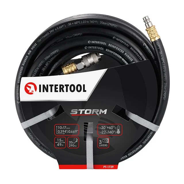 Шланг подключается к системе с помощью быстроразъемных соединений европейского типа, они герметичны и позволяют быстро подсоединить пневмоинструмент к компрессору.