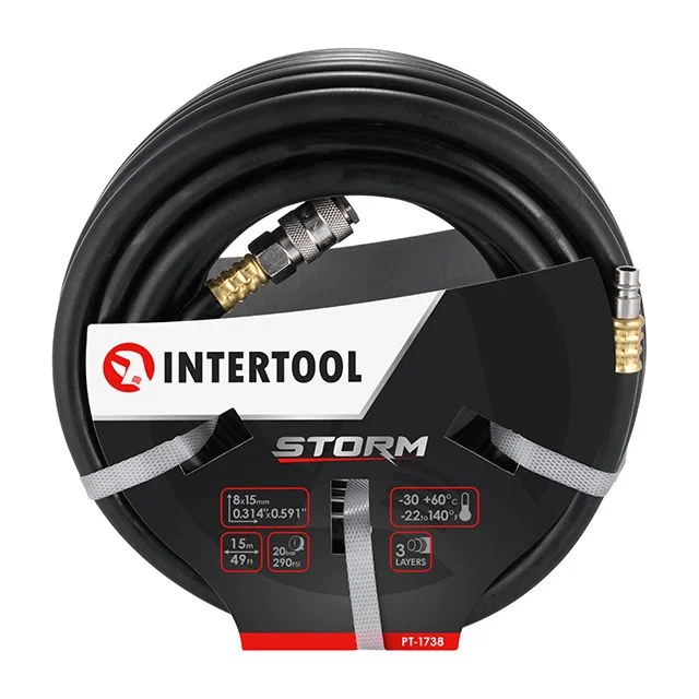 Шланг подключается к системе с помощью быстроразъемных соединений европейского типа, они герметичны и позволяют быстро подсоединить пневмоинструмент к компрессору.