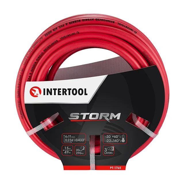 Шланг изготовлен из армированного гибридного состава, собравшего в себе лучшие свойства резины и поливинилхлорида. Три слоя шланга делают его устойчивым к низким и высоким температурам, маслам, бензину, к механическим повреждениям, изломам. Латунные быстроразъемные соединения. Шланг легко подключается к системе с помощью быстроразъемных соединений европейского типа, они герметичны и позволяют быстро подсоединить пневмоинструмент к компрессору. Изготовлены соединения из латуни, имеющие ряд преимуществ перед стальными фитингами. Характеризуются лучшей стойкостью к коррозии, имеют больший срок эксплуатации, более долговечны.