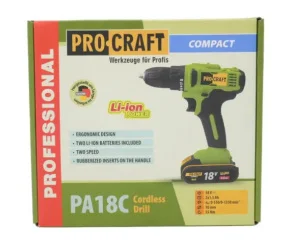 ProCraft PA-18С Compact — это надежный и мощный шуруповерт, который станет незаменимым помощником в выполнении различных задач, обеспечивая высокую производительность и удобство в использовании.