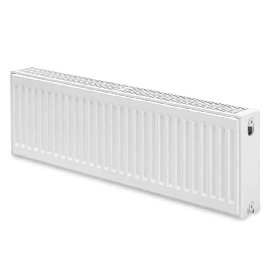Панельное отопительное устройство типа 22, рассчитанное на обогрев помещений площадью до 20 м². Конструкция радиатора включает две панели и два конвектора, что обеспечивает высокую теплоотдачу и равномерное распределение тепла по всей комнате. Высота модели составляет 500 мм, а межосевое расстояние – 450 мм, что делает её удобной для монтажа в стандартных системах отопления.