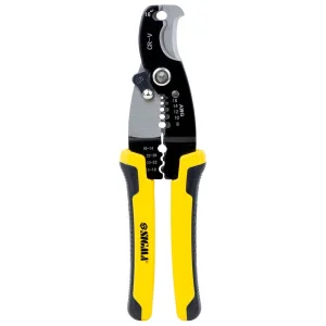 Возвратный механизм для обеспечения обратного хода рукояток; Режущий крюк для снятия изоляции и оболочки кабеля; Обжим неизолированных контактов от 0.6мм2 до 6.0мм2; Специальный фиксатор для удобного хранения