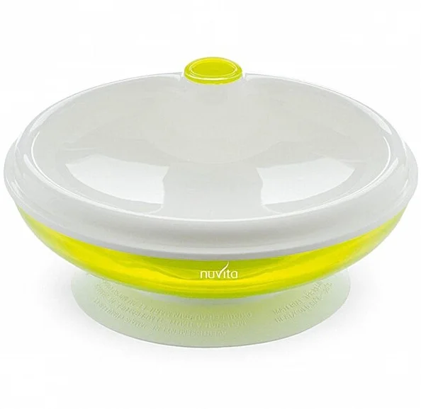 Нескользящая присоска на основании пластины удерживает тарелку на месте, оснащена небольшим отверстием, в который заливается горячая вода для сохранения детского питания теплым.