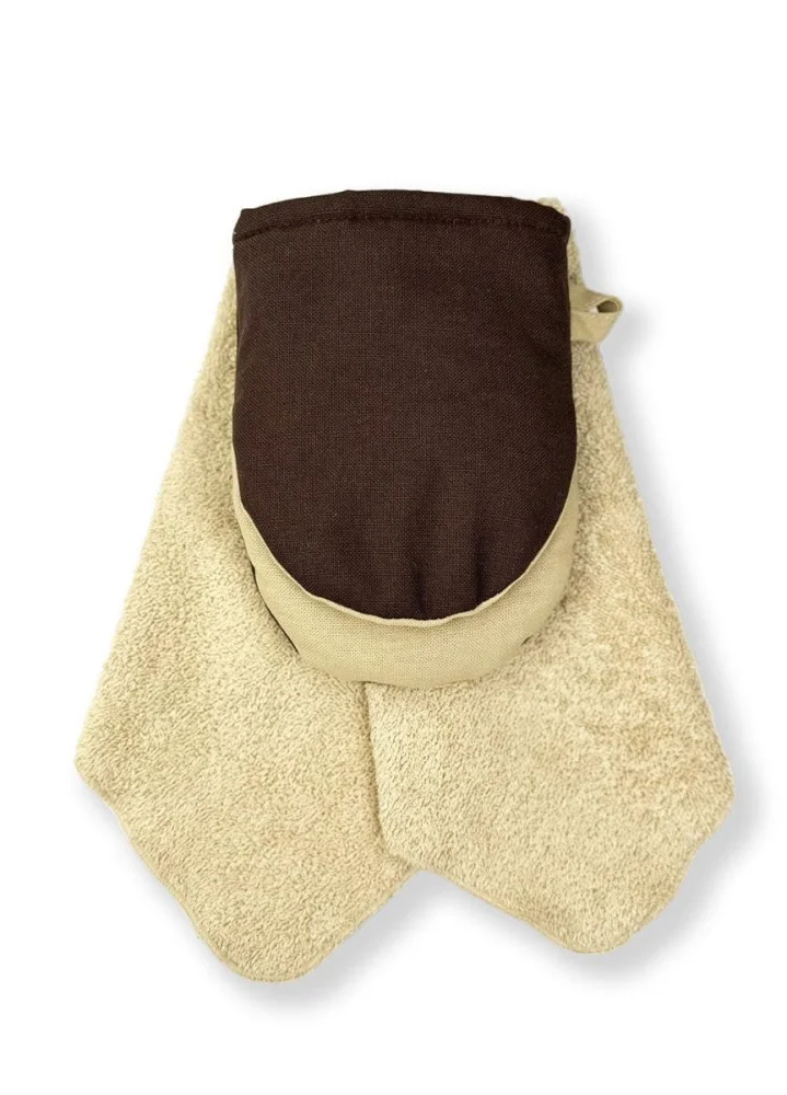 Перчатка размером 19х15см и две салфетки 30х30см. Упаковка.