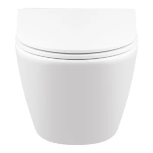 безободковой чашей унитаза, исключающей скапливание лишней грязи и упрощающей очищение изделия.