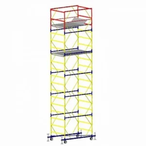используемое в высотных работах приспособление для безопасного проведения ремонтных, строительных, монтажных задач. Высота до рабочей площадки составляет 660 см, а общая рабочая высота – 850 см. Для лучшей устойчивости предусмотрены выравнивающие домкраты. Используется как внутри помещения, так и при наружных работах.