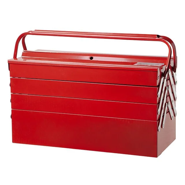 Четырехуровневый металлический, окрашенный. Оснащен двумя металлическими ручками для переноски. Удобная система доступа к содержимому.