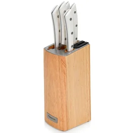 Самый популярный и практичный вариант для дома. Удобная подставка помогает держать ножи в порядке, быстро находить нужный инструмент и защищает лезвия от повреждений. Если вы решили купить набор ножей с подставкой, обратите внимание на материалы: натуральное дерево смотрится дорого и экологично, пластик - лёгкий и доступный, а нержавеющая сталь - прочная и долговечная.