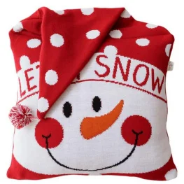 Подушка декоративная вязаная Прованс Снеговик в колпаке 45x45см (042331)