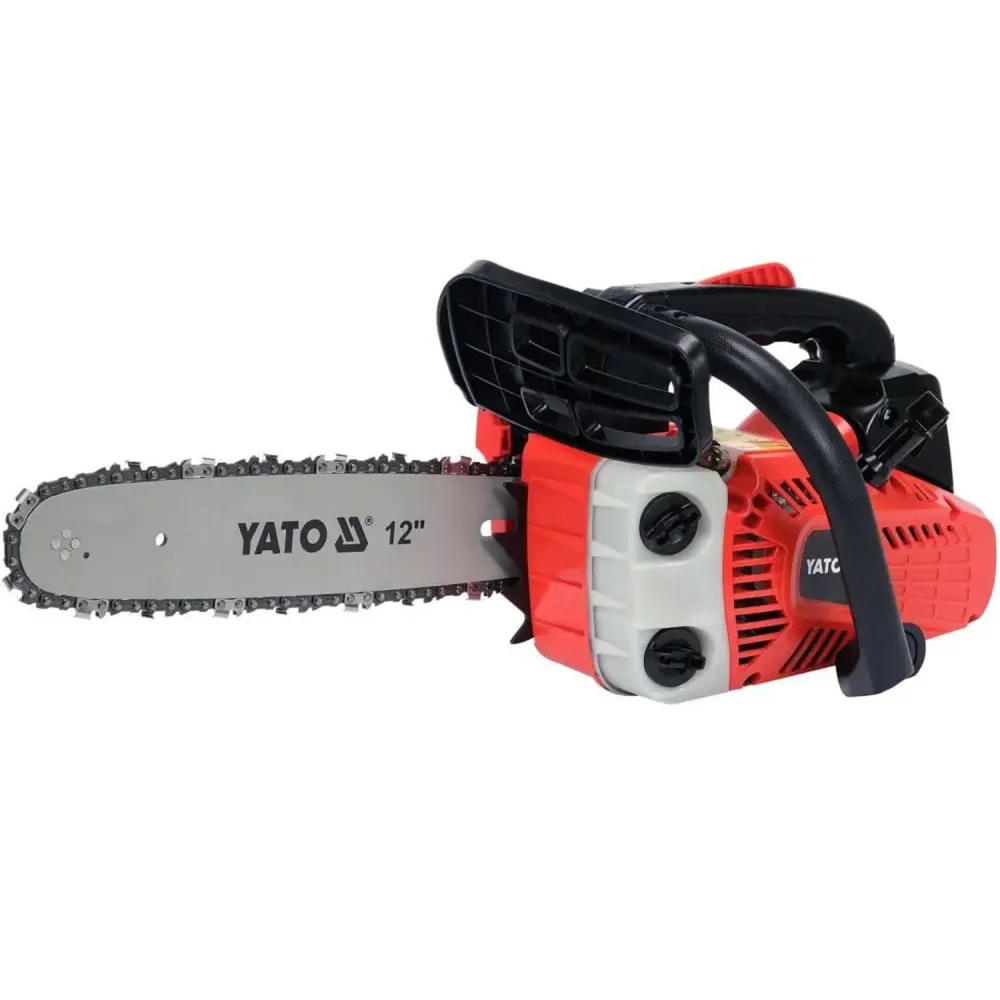 Бензопила ланцюгова YATO YT-84893 - це компактний, легкий і маневрений інструмент, призначений для догляду за садом, обрізання дерев, заготівлі дров і виконання будівельних робіт з деревиною. Завдяки продуманій конструкції та оптимальній потужності модель забезпечує ефективне й акуратне пиляння гілок, дощок і невеликих стовбурів. Невелика вага і зручна форма дозволяють впевнено контролювати інструмент і працювати навіть у важкодоступних місцях. Бензопила оснащена надійним двотактним одноциліндровим двигуном об’ємом 25,4 см³ і потужністю 0,75 кВт, що забезпечує стабільну роботу і високу швидкість різу. Максимальна частота обертання двигуна досягає 8500 об/хв, а швидкість руху ланцюга становить 12,95 м/с, завдяки чому інструмент швидко та ефективно справляється з деревиною різної щільності.