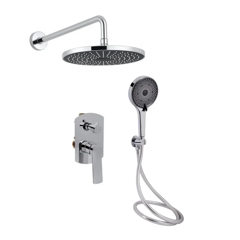 Комплектація включає змішувач, верхній душ, ручний душ та шланг, що робить виріб повністю готовим до встановлення та використання.
