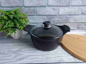 Каструля, кришка, 2 знімні силіконові прихватки на ручки, упаковка.