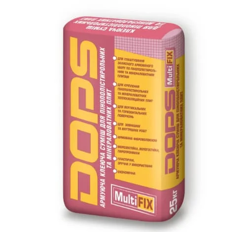 Особливості клею армуючого для пінополістирольних та мінераловатних плит Dops MultiFix Optima Зима 25кг