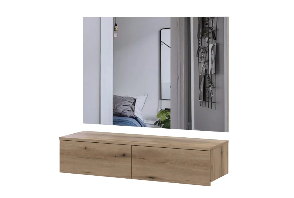 Направляючі на шулядках – телескопічні. Розмірі зеркала: 100х70х3 см. Кромка зовнішніх, внутрішніх деталей, полиць – 0.5 мм.