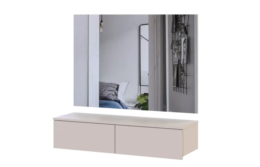 Направляючі на шулядках – телескопічні. Розмірі зеркала: 100х70х3 см. Кромка зовнішніх, внутрішніх деталей, полиць – 0.5 мм.