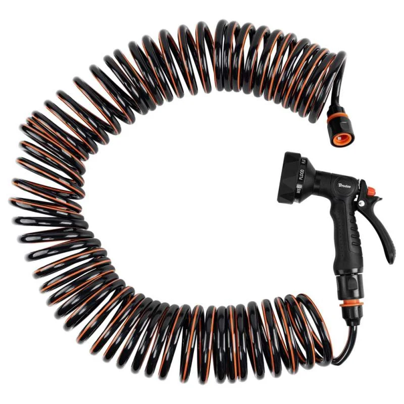 9-функціональний пістолет, спіральний шланг 15 м, з'єднання для крана 3/4" / 1/2", 2 швидкоз'єднувачі