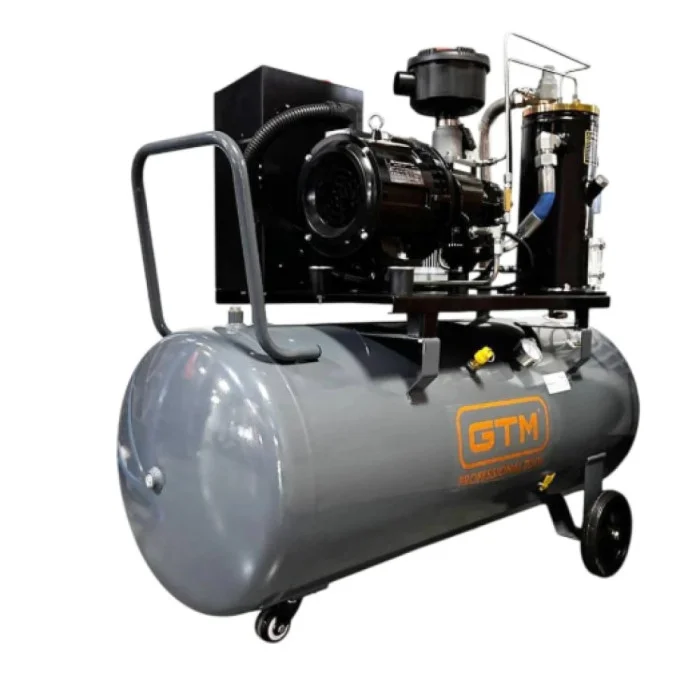 Ключовою особливістю GTM DLG5.5V/inv є наявність вбудованого інвертора, який автоматично підлаштовує швидкість обертання двигуна під поточне навантаження. Це дозволяє суттєво знизити енергоспоживання, зменшити пікові навантаження на мережу та подовжити строк служби всіх компонентів. Стабільність тиску позитивно впливає на роботу підключеного обладнання та підвищує якість виробничих процесів. Компресор вирізняється низьким рівнем шуму та зменшеними вібраціями порівняно з традиційними поршневими моделями, що робить його більш комфортним у повсякденній експлуатації. Ефективна система фільтрації забезпечує високу якість повітря на виході та захищає пневмоінструмент від забруднень. Компактні розміри 126×46×100 см і маса 150 кг дозволяють зручно розмістити установку навіть в обмеженому просторі. Для зручності обслуговування та транспортування компресор комплектується колесами, трубкою для відведення масла та докладною інструкцією з експлуатації. Надійна конструкція, простота технічного обслуговування та тривалий строк служби роблять гвинтовий компресор GTM DLG5.5V/inv оптимальним вибором для підприємств, яким потрібне економічне та стабільне джерело стисненого повітря з можливістю точного регулювання продуктивності.