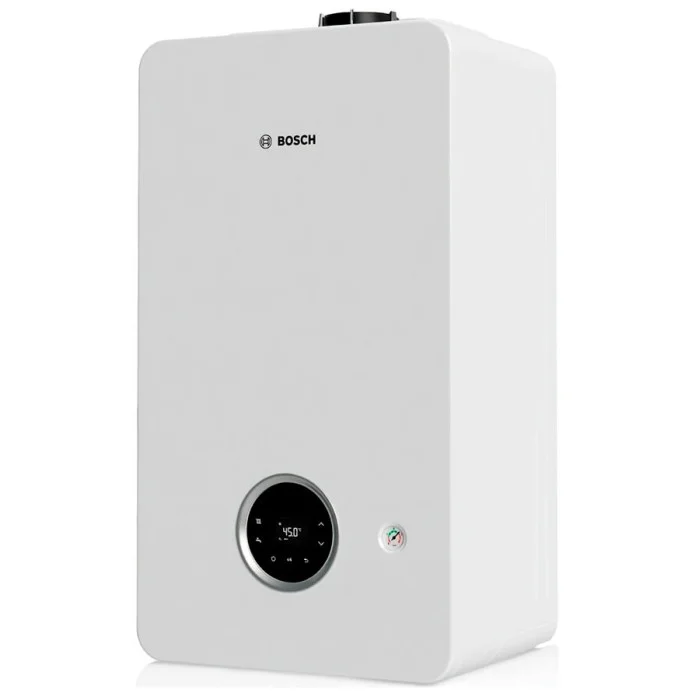 Двоконтурний газовий конденсаційний котел Bosch Condens 2300 GC2300iW 24/30 - сучасне рішення для обігріву житлових та комерційних приміщень площею до 240 м². Котел використовує технологію конденсації, завдяки чому коефіцієнт корисної дії досягає 109%, що забезпечує значну економію палива. Настінний монтаж дозволяє заощадити простір, а сучасний дизайн у білому кольорі легко впишеться в будь-який інтер’єр. Котел оснащений закритою камерою згоряння та примусовою тягою, що забезпечує безпечний та ефективний відвід продуктів згоряння через коаксіальний димохід діаметром 60/100 або 80/125 мм. Потужність пристрою становить 24 кВт, а діапазон регулювання температури теплоносія в системі опалення — від 25 до 90 °C. Для гарячого водопостачання використовується вторинний алюмінієвий теплообмінник з продуктивністю 14,1 л/хв, що гарантує стабільну подачу гарячої води в будинку. Котел підходить як для роботи на природному газі, так і на зрідженому газі після переобладнання.