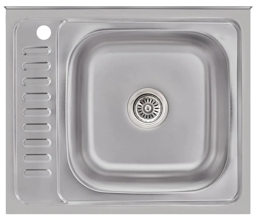 - Продумана конструкція. Модель оснащена просторою робочою чашею (400x400x160 мм), що ідеально підходить для миття посуду та продуктів. Ребристе крило, розташоване зліва, служить зручним майданчиком для сушіння посуду та розморожування продуктів, а також додає функціональності.