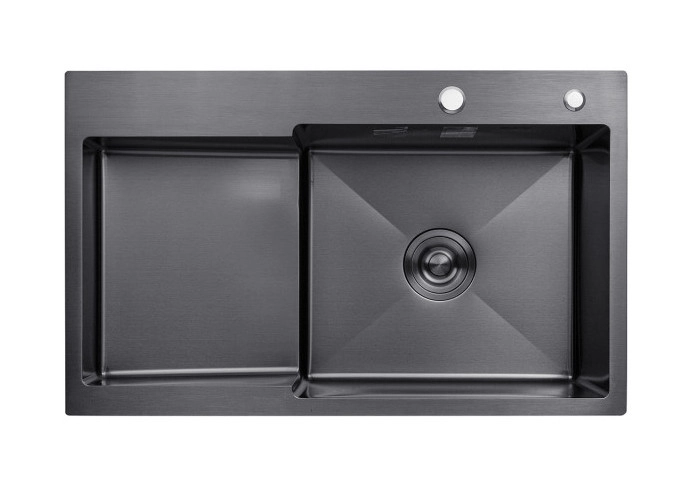 Мийка виконана в лаконічній прямокутній формі з просторою основною чашею і зручним крилом для сушіння посуду або розміщення кухонного приладдя. Врізний спосіб монтажу забезпечує ідеальне вбудовування в стільницю, створюючи єдину гармонійну поверхню і полегшуючи прибирання. Покриття PVD Schwarze, яке надає мийці глибокий чорний колір і елегантну брашировану поверхню. Це не тільки естетично привабливо, але і забезпечує підвищену стійкість до подряпин, стирання і впливу агресивних миючих засобів, зберігаючи первозданний вигляд мийки надовго.