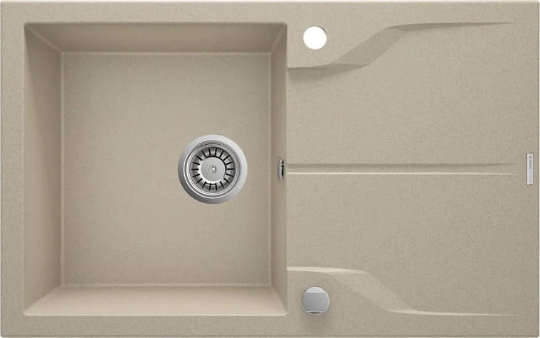 Являє собою високотехнологічний виріб, розроблений з урахуванням сучасних вимог до функціональності, надійності та ергономіки. Модель виготовлена з композитного граніту, що має підвищену міцність і стійкість до зовнішніх впливів. Завдяки своїм фізико-хімічним властивостям, матеріал демонструє відмінну стійкість до ударів, термостійкість і стійкість до зміни кольору, що особливо важливо при інтенсивній експлуатації в умовах кухні.