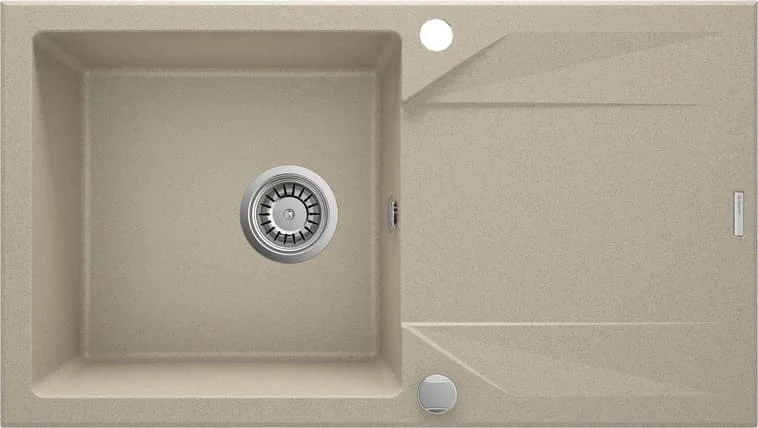 Це гармонійне поєднання функціональності, надійності та витонченого дизайну, створене для сучасних інтер'єрів, де важливими є не тільки практичні рішення, але й естетика. Виготовлена з міцного граніту, модель відрізняється високою стійкістю до механічних пошкоджень, термічних перепадів та зміни кольору. Навіть при інтенсивній експлуатації миття зберігає свій первісний вигляд, не втрачаючи насиченості бежевого відтінку, який додає тепла та затишку в кухонний простір.