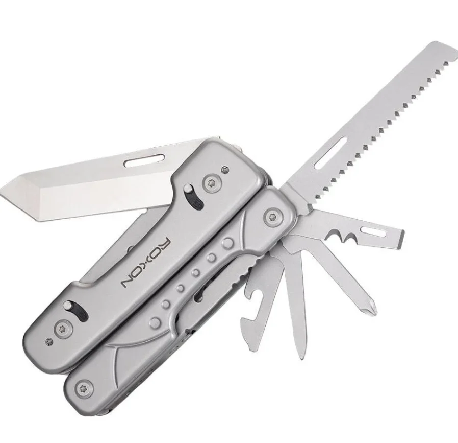 Викрутка; Тримач біт; Ніж для консервів; Кресало; Лінійка; Набір біт; Ніж; Ножиці; Гострогубці; Пасатижі; Пила; Шило