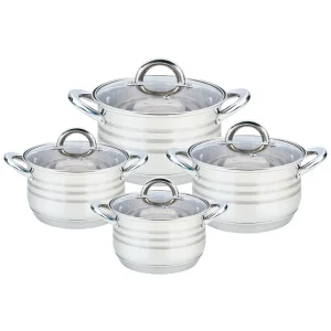 У набір посуду Maestro 8 предметів (3513-8-MR) входять чотири каструлі об'ємом від 2,9 до 6,5 л і кришки відповідних діаметрів.