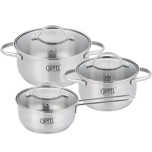 - Елегантність та сучасність. Глянсова поверхня, плавні лінії та ергономічні ручки із зручним захопленням роблять набір Gipfel Azalea справжньою окрасою будь-якої кухні. Його стильний дизайн легко впишеться в найсучасніші інтер'єри.