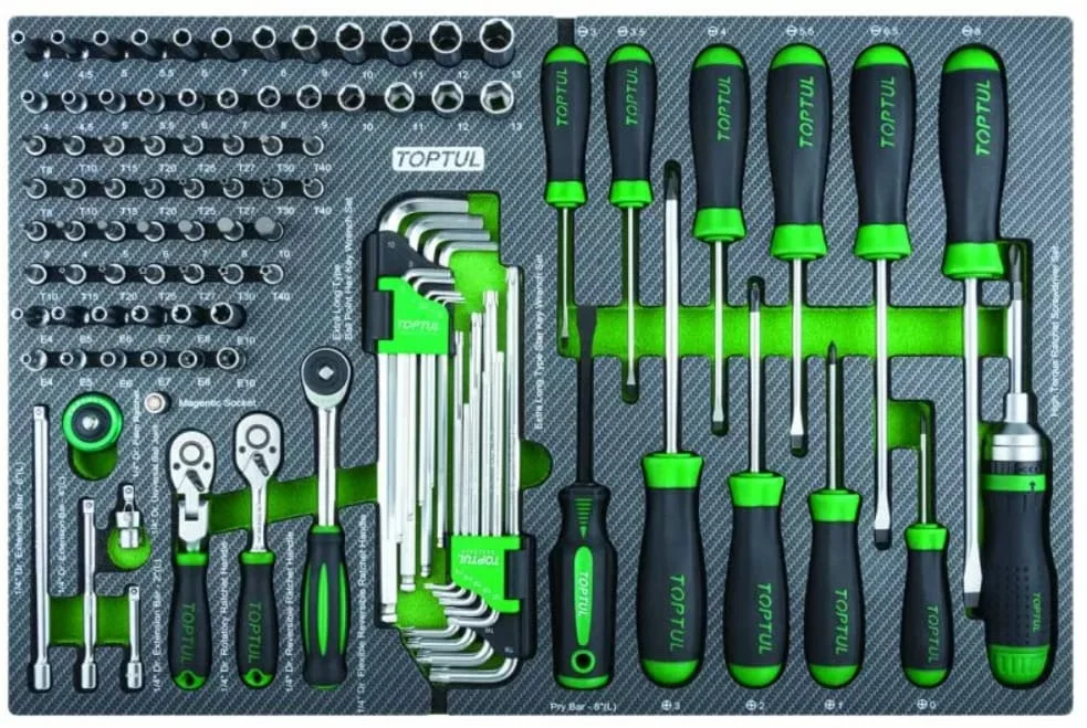 Набір Toptul 114 предметів (GEDB431) – це ідеальне рішення для професіоналів, яким важлива якість, надійність та функціональність. Він підходить для щоденного використання в умовах СТО, а також стане відмінним вибором для автолюбителів, які воліють самостійно обслуговувати свій автомобіль. Продумана комплектація, висока якість виконання та зручна організація роблять цей набір незамінним помічником у роботі.