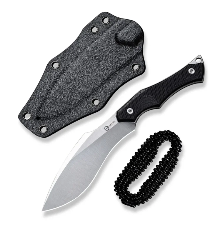 загальна вага з піхвами та упаковкою - 180 г; в набір входять піхви з кайдекса і сталевий ланцюжок на шию.