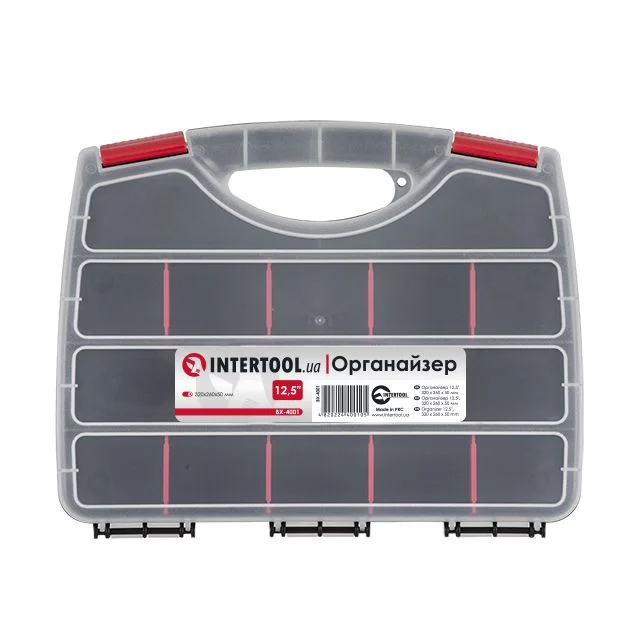 Прозора кришка забезпечує відмінний огляд всього вмісту органайзера. Кришка надійно і щільно закривається. Зручна ручка сприяє комфорту перенесення.