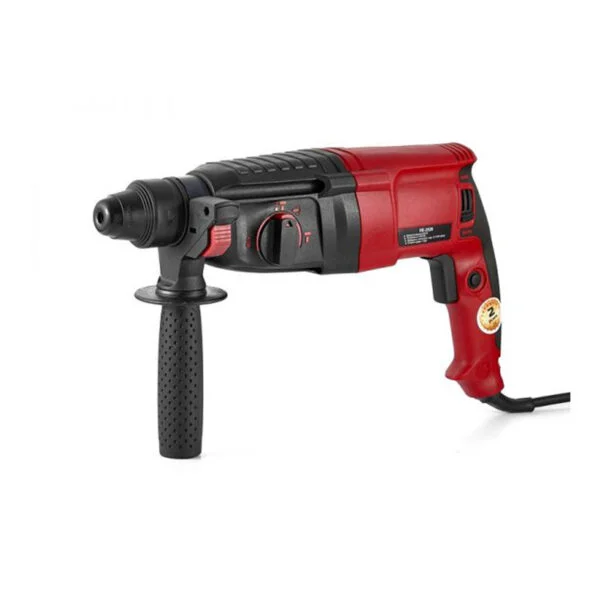 Корпус ПЕ-2526 має подовжену форму, що дозволяє використовувати інструмент у важкодоступних місцях та прорізах. Регулювання обертів дає можливість обирати точний режим для свердління дрібних отворів на низьких обертах або підвищену продуктивність при роботі з масивними матеріалами. Механізм реверсу з поворотним щіткотримачем забезпечує максимальні оберти в будь-якому напрямку обертання, подовжуючи термін служби щіток. Перфоратор обладнаний запобіжною муфтою, яка запобігає зворотному удару при заклинюванні бура та захищає як оператора, так і сам інструмент. Наявність захисного включення запобігає випадковому увімкненню, а прогумована рукоятка покращує хват і зменшує втому оператора. Комплектація моделі включає: додаткову рукоятку, набір SDS-plus свердел (5/6/8×150 мм), долото, мастило для хвостовиків, пластиковий кейс для зберігання та транспортування, а також інструкцію з експлуатації. Розширена гарантія 24 місяці підтверджує надійність і довговічність інструмента. Енергомаш ПЕ-2526 - це компактний, легкий та потужний перфоратор, ідеально придатний для побутових та професійних завдань малого масштабу, що поєднує зручність експлуатації, безпеку та універсальність застосування.
