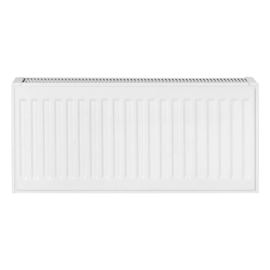 - Модель виконана у форматі панельного радіатора з двома сталевими панелями та двома конвекційними пластинами, що забезпечує ефективний теплообмін та швидке прогрівання повітря. При висоті 300 мм та ширині 700 мм прилад займає небагато місця, але при цьому здатний підтримувати стабільну температуру у приміщеннях середнього розміру.