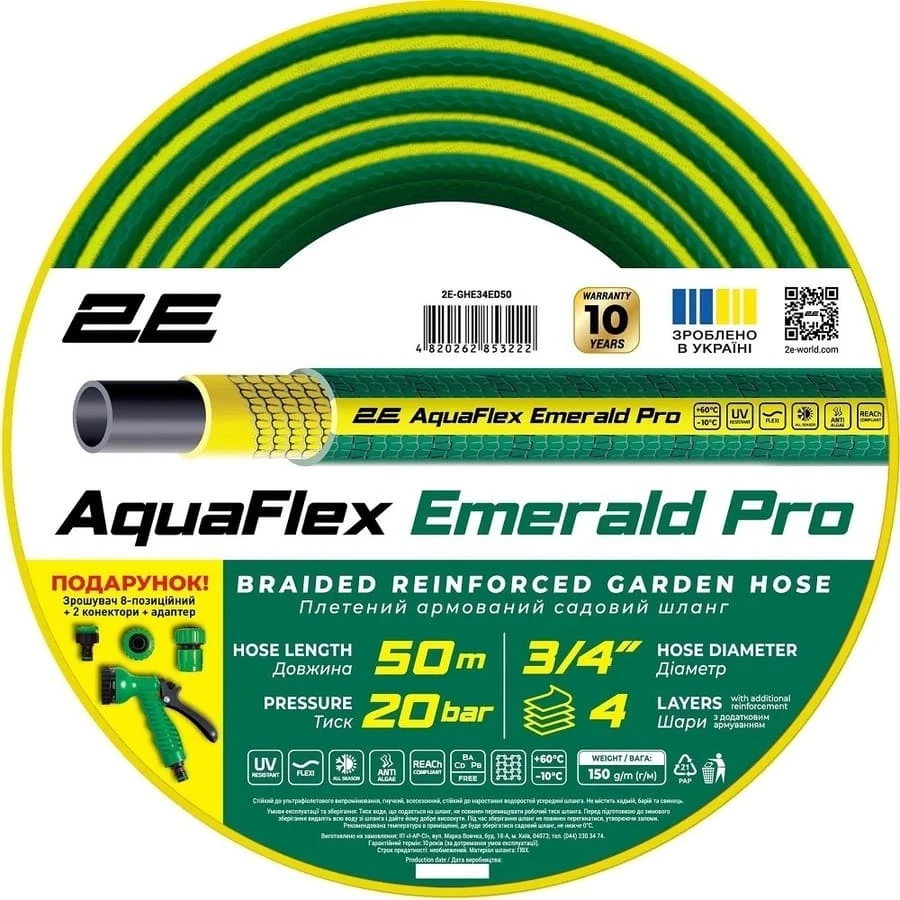 Шланг садовий 2Е AquaFlex Emerald Pro 3/4“ 50 м (2E-GHE34ED50)