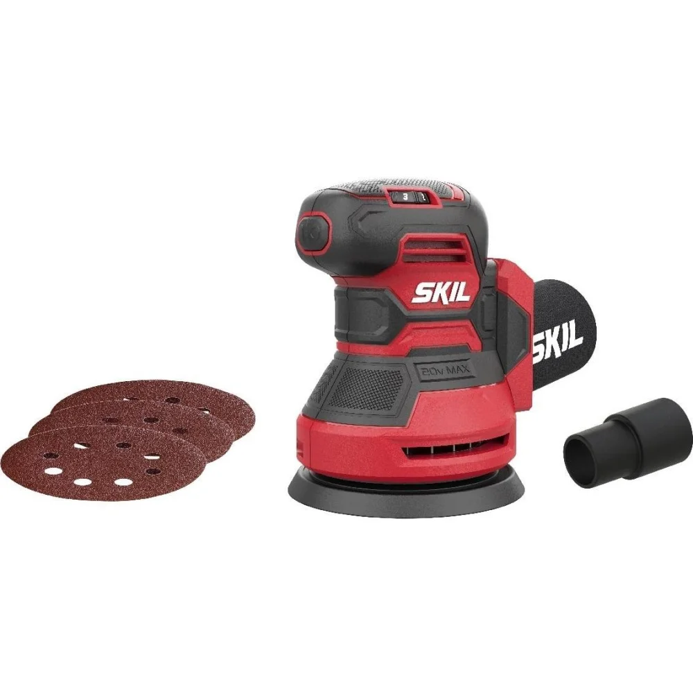 Однією з ключових переваг моделі є регулювання обертів, яке дозволяє точно налаштувати інструмент під конкретний матеріал і тип обробки. Це особливо важливо під час роботи з м’якою деревиною, пластиком або тонкими металевими деталями. Амплітуда ексцентрика 3 мм забезпечує хороший баланс між швидкістю знімання матеріалу та якістю поверхні. Для підвищення комфорту передбачена система захисту від пилу. До комплекту входить мішок для збирання пилу, а також адаптер для підключення пилососа, що допомагає підтримувати чистоту робочого місця та покращує видимість зони обробки. Рівень шуму та вібрації перебуває в допустимих межах для побутового інструмента, що робить роботу більш комфортною. До стандартної комплектації входять шліфмашина, мішок для пилу, адаптер для пилососа, три листи шліфувального паперу та керівництво з експлуатації. Модель постачається без акумулятора та зарядного пристрою, що зручно для користувачів, які вже мають інструменти SKIL платформи 20 В. Яскравий червоно-чорний корпус підкреслює фірмовий стиль бренду. Ексцентрикова шліфмашина SKIL 3745 CA виробляється в Китаї та має гарантію 36 місяців. Це надійний вибір для домашніх майстрів, яким потрібен легкий, функціональний і зручний акумуляторний інструмент для регулярних шліфувальних робіт.