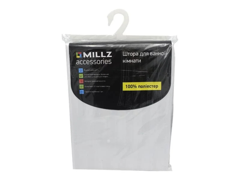 Шторка - фіранка для ванної MILLZ MRS-P-061 біла поліестер 180х180см