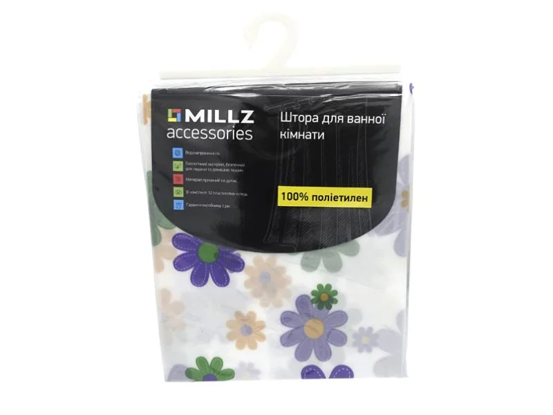 Шторка - фіранка для ванної MILLZ MRS-P-066 принт квіти 180х200см