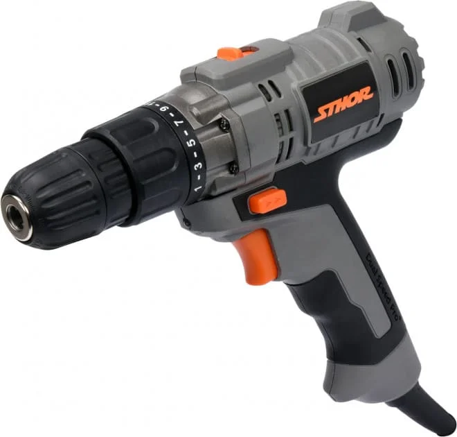 У шуруповерті-дрилі мережевого STHOR 300Вт (78990) швидкозатискний патрон, процес затиснення свердла полягає в обертанні рукою, що особливо зручно при монтажі, коли доводиться часто міняти насадки.